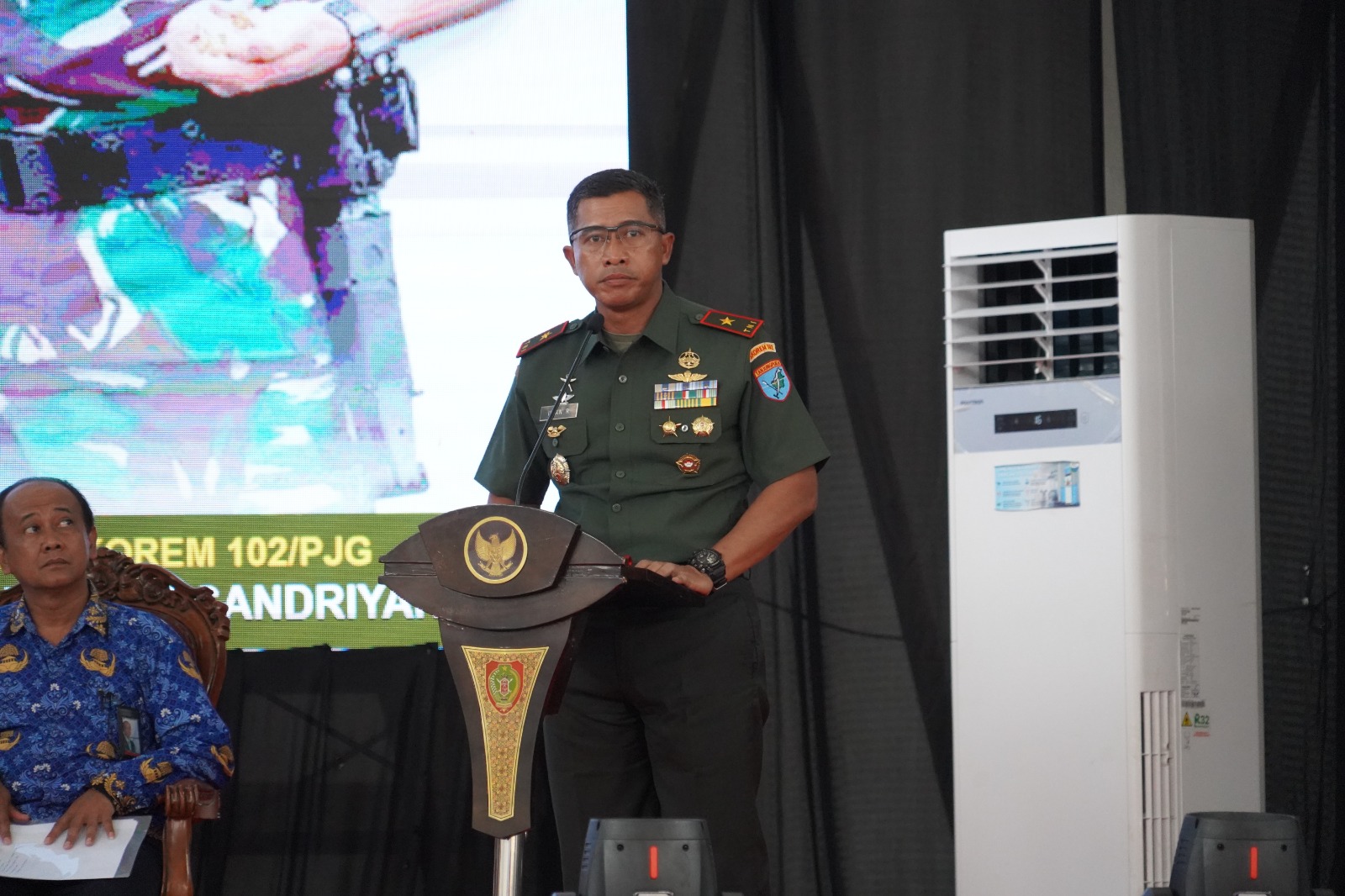 Danrem 102/Pjg Brigjen TNI Iwan Rosandriyanto S.IP. M.Han., pada arahanya menyampaikan untuk mencakup 13 kabupaten dan 1 kota, ideal nya ada 14 kodim di setiap Kab/Kota, namun sekarang hanya ada 8 (delapan) Kodim.