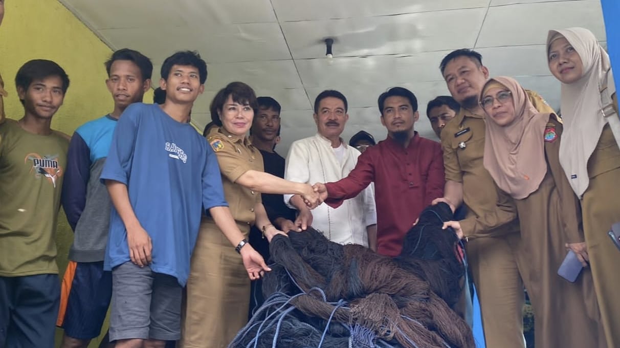 CNN Keraton : Kepala Dinas (Kadis) perikanan Kabupaten Banggai Ir. Ferlin Monggesang M.Si menyerahkan bantuan Pukat kepada Kelompok nelayan yang berada di Kelurahan Karaton, kecamatan Luwuk, kabupaten Banggai.