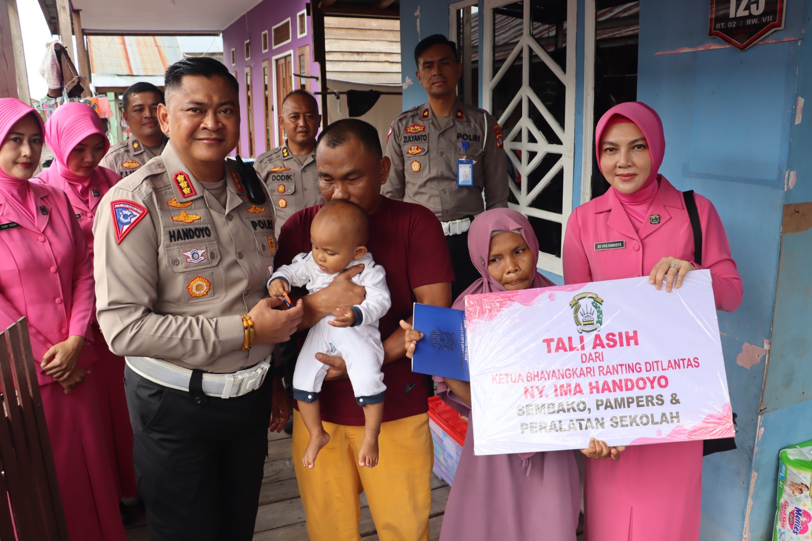 Dalam kesempatan ini, Ditlantas Polda Kalteng, KBP RS Handoyo Bersama Ketua Bhayangkari Ranting Ditlantas, Ima Handoyo, berkesempatan bercengkrama bersama keluarga kecil bapak Abdul Rasyid.