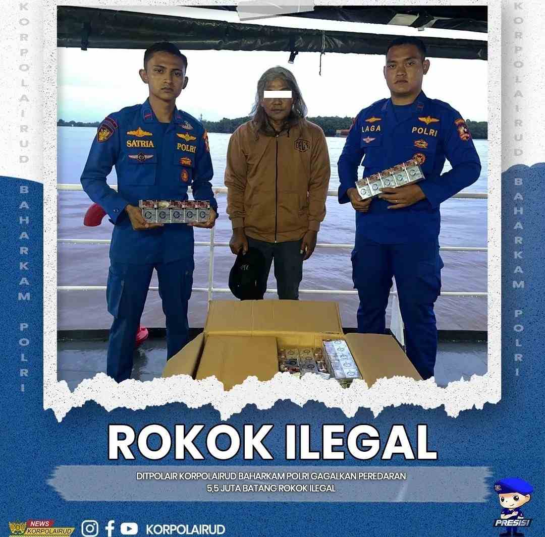 Penyelundupan 5,3 Juta Batang Rokok Ilegal di Banjarmasin Berhasil digagalkan Ditpolair Korpolairud Baharkam Polri .