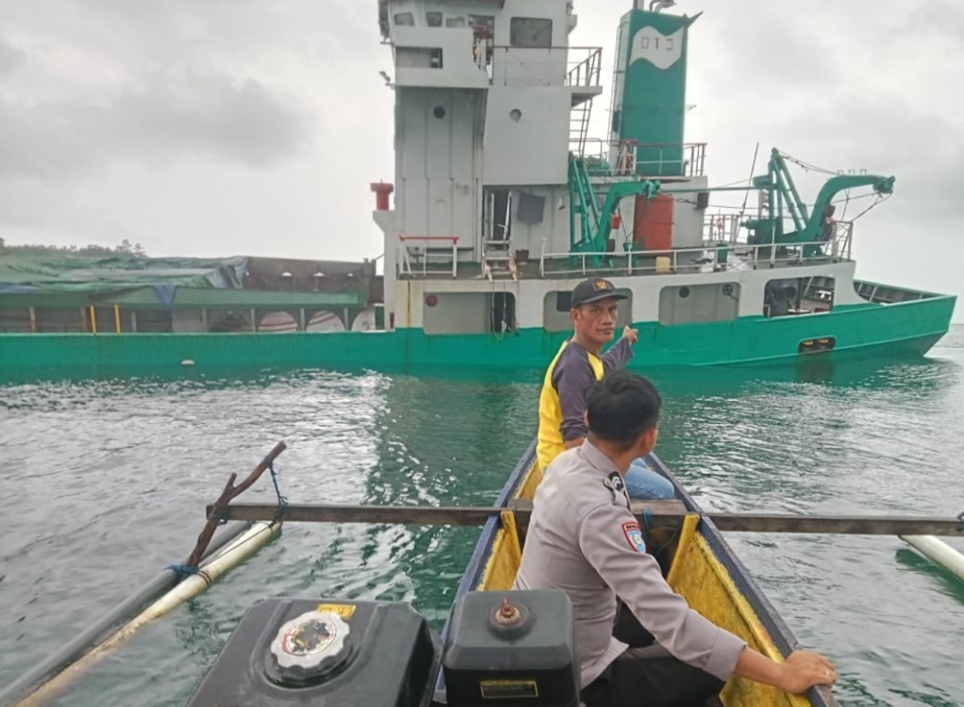 Polisi bersama pemerintah desa kemudian mendatangi Kapal tersebut dengan menggunakan mesin katinting milik warga.