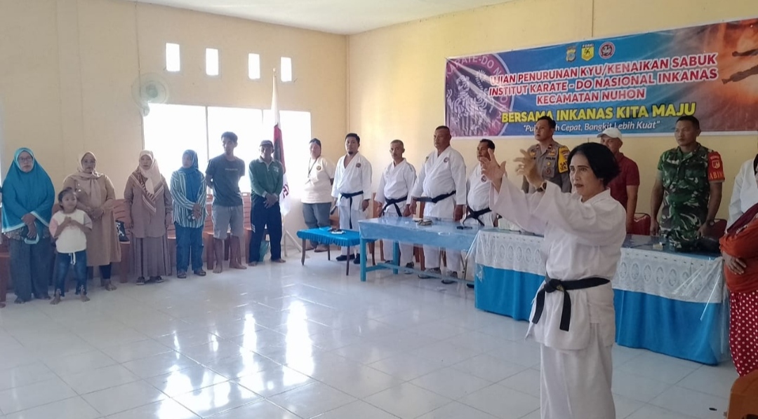 CNN–Banggai, Inkanas (Institut Karate-Do Nasional) Ranting Nuhon, Cabang Banggai, menggelar ujian kenaikan sabuk di Aula pertemuan Puskesmas Nuhon, Minggu (14/7/2024) pagi.
