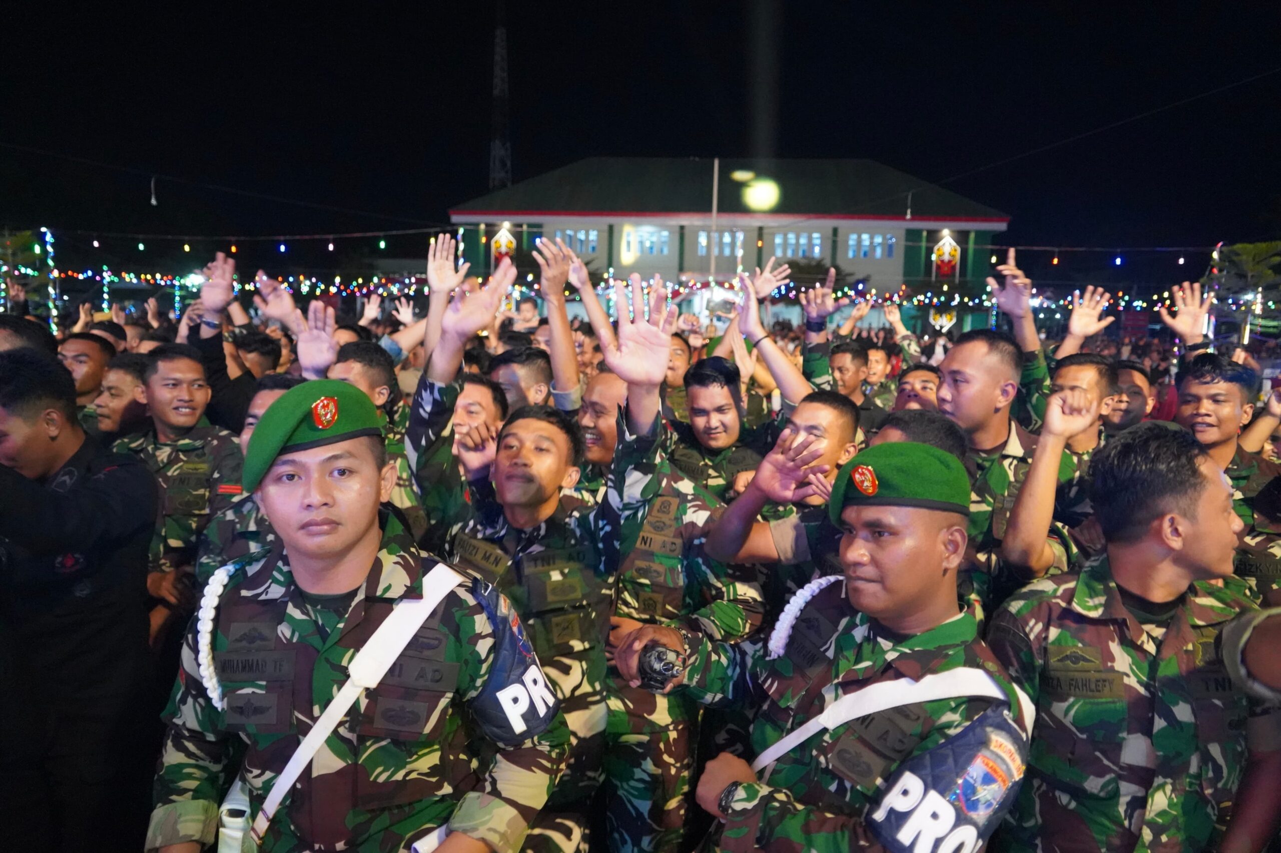 Ribuan masyarakat dan Prajurit tampak menyatu,Sorak sorai dan goyangan penonton pun pecah, mereka larut dalam irama lagu yang dibawakan artis Lala Widy bersama Pangdam XII/Tpr.