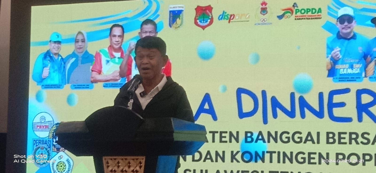 Sedang Gubernur Sulteng menyampaikan apresiasi kepada Banggai atas jamuan ini yang juga sebagai tuan rumah POPDA. Juga kepada seluruh Official Kontingen se-Sulteng serta perwakilan atlet.