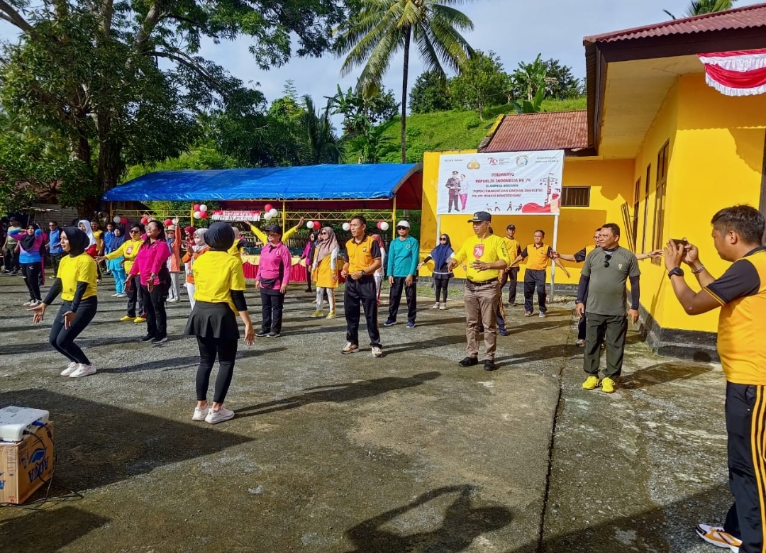 CNN–Kamala, Menyemarakkan Hari Ulang Tahun (HUT) Kemerdekaan Republik Indonesia ke-79, Kepolisian Sektor (Polsek) Lamala wilayah Kepolisian Resort (Polres) Banggai Sulawesi Tengah (Sulteng) mengelar olahraga bersama Forum Koordinasi Pimpinan Kecamatan (Forkopimcam) Lamala, Masama dan Mantoh, Jumat (09/08/2024).