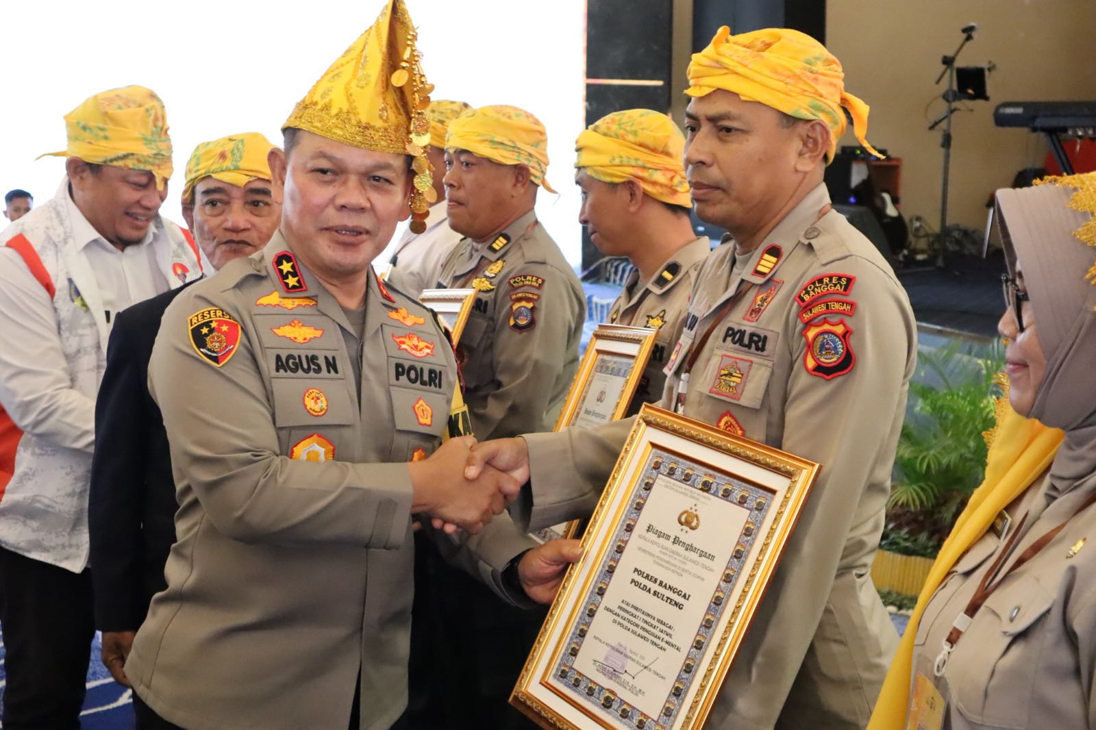 CNN–Luwuk, Kepolisian Resort (Polres) Banggai Sulawesi Tengah (Sulteng) menerima dua penghargaan peringkat satu dari Kepala Kepolisian Daerah (Kapolda) Sulteng Irjen Pol. Dr. Agus Nugroho saat kegiatan penutupan Rakernis SDM yang digelar di Convention Hall Swisbell Hotel Palu, Rabu (14/08/2024).