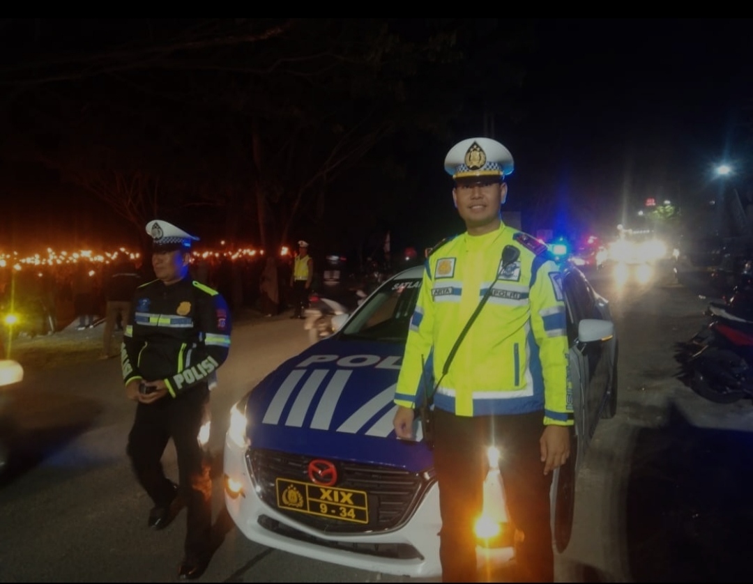 CNN–Luwuk, Jajaran Satuan Lalulintas (Satlantas) Kepolisian Resort (Polres) Banggai Sulawesi Tengah (Sulteng) melakukan pengaturan dan pengawalan Pawai Obor dalam rangka Hari Pramuka ke 63 tahun 2024 di Kota Luwuk, Selasa (13/08/2024) malam.