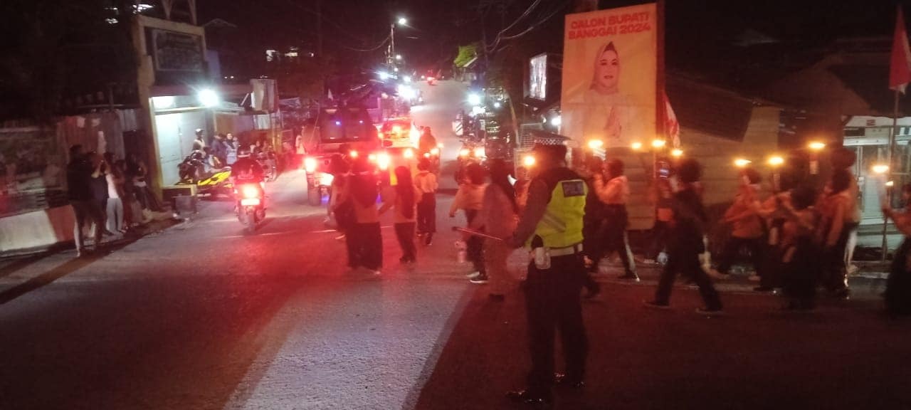 CNN–Luwuk, Jajaran Satuan Lalulintas (Satlantas) Kepolisian Resort (Polres) Banggai Sulawesi Tengah (Sulteng) melakukan pengaturan dan pengawalan Pawai Obor dalam rangka Hari Pramuka ke 63 tahun 2024 di Kota Luwuk, Selasa (13/08/2024) malam.