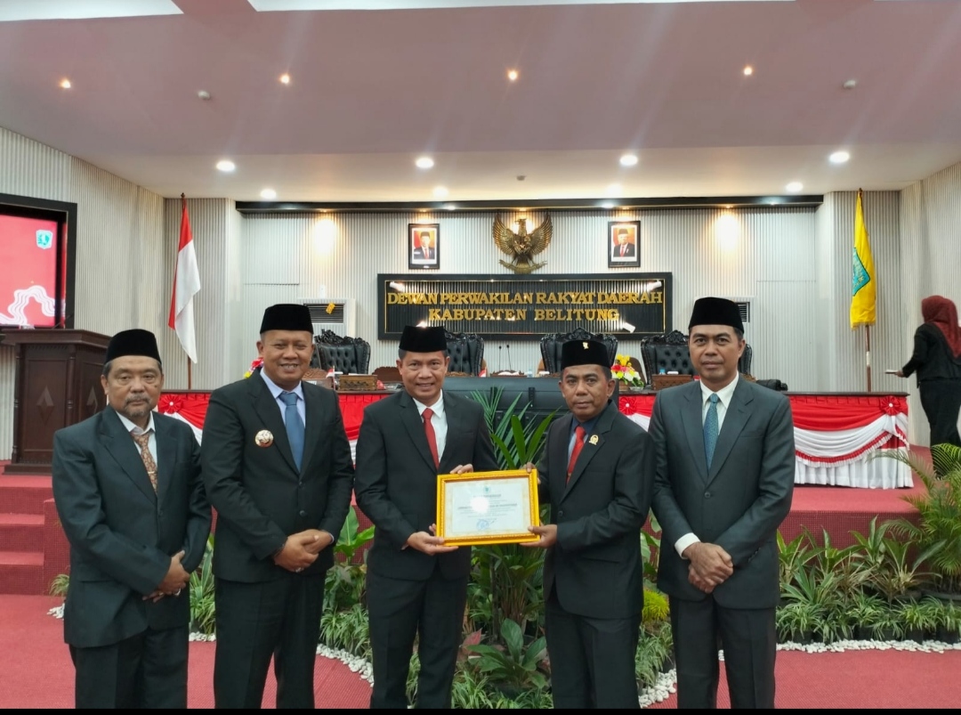 Penghargaan langsung diserahkan oleh Ketua DPRD Kabupaten Belitung didampingi Wakil Ketua bersama PJ Bupati Belitung, Mikron Antarisa, M.Si serta Sekretaris Daerah (Sekda), Hendra Caya, M.Si Kepada Kalapas Kelas IIB Tanjungpandan, Jumat (16/08) di Ruang Sidang DPRD Kabupaten Belitung.