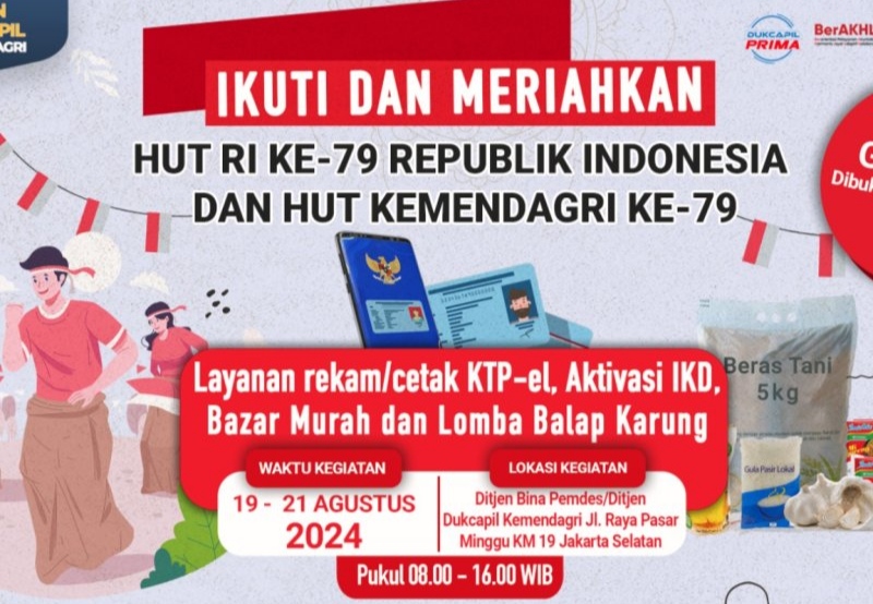 Peringati HUT ke-79 RI dan Kemendagri, Ditjen Dukcapil Buka Layanan Rekam Cetak KTP-el dan Aktivasi IKD