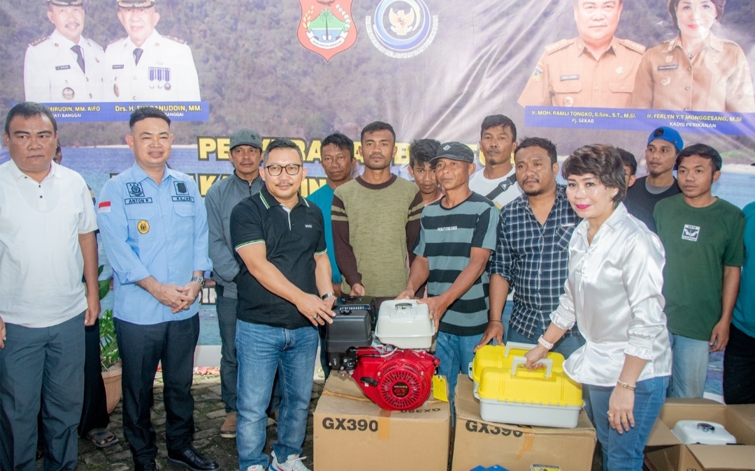 CNN–Luwuk, Bupati Banggai, Provinsi Sulawesi Tengah (Sulteng), Amirudin menyerahkan bantuan mesin ketinting sebanyak 355 unit dan sejumlah alat pancing kepada 43 kelompok nelayan perikanan tangkap di 24 kecamatan di Kabupaten Banggai, Minggu (25/8/2024), di halaman Gedung Nasional (Genas), Luwuk.