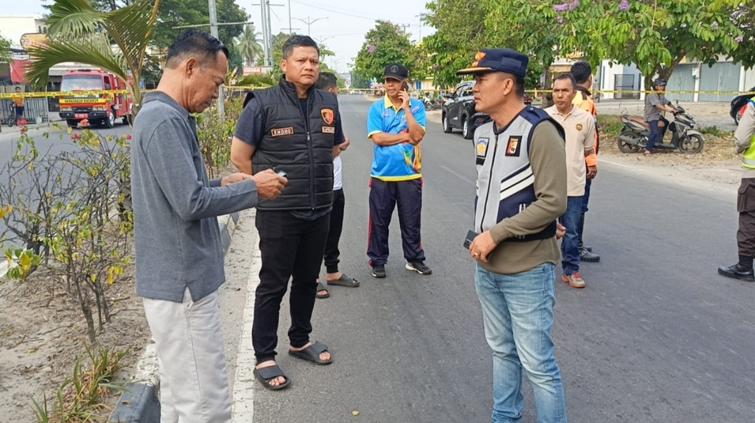 Pj Wako Prabumulih, H Elman ST MM bersama Kapolres, AKBP Endro Aribowo SIk turun langsung meninjau lokasi kejadian di Simpang Tugu Air Mancur, Minggu pagi.