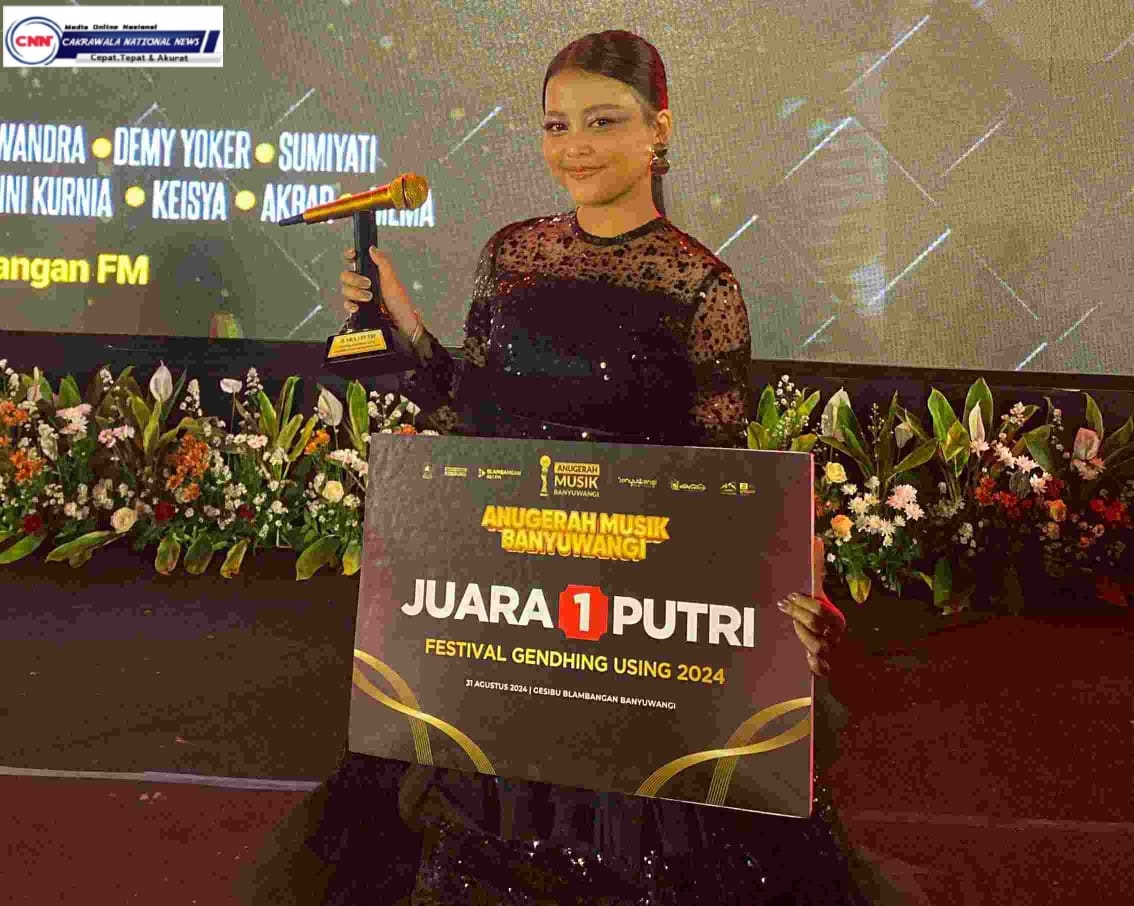 CNN–Banyuwangi, Ajang bergengsi bagi pelaku seniman, musisi kembali di gelar dalam Anugerah Musik Banyuwangi tahun 2024. Bertempat di Gasibu Blambangan Acara Anugerah Musik Banyuwangi berlangsung meriah yang di hadiri oleh segenap Seniman musik dan para juara Festival Musik Using (FGU) 2024.