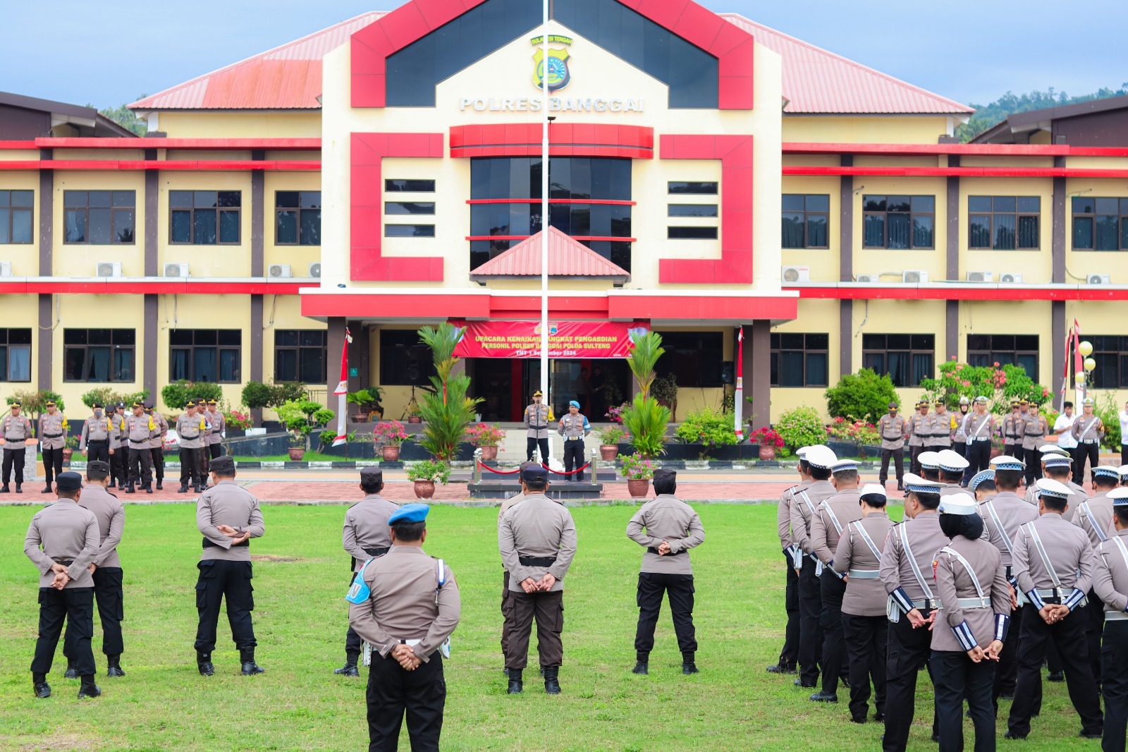 CNN–Luwuk, Polres Banggai menggelar upacara kenaikan pangkat pengabdian periode 1 September 2024 di halaman Mapolres, Kawasan Bukit Halimun, Kecamatan Luwuk Selatan, Selasa (2/9/2024) pagi.