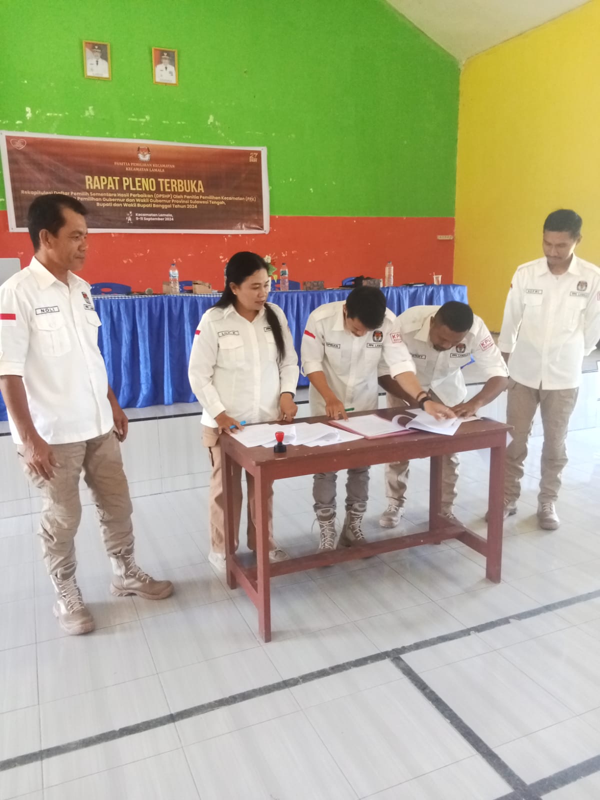 CNN-Lamal, Bertempat di Balai Pertemuan Umum (BPU) Desa Lomba Kecamatan Lamala, Panitia Pemilihan Kecamatan (PPK) Lamala. Menggelar Rapat Pleno Terbuka Rekapitulasi Daftar Pemilih Sementara Hasil Perbaikan (DPSHP) tingkat Kecamatan Lamala, pada pemilihan Gubernur dan Wakil Gubernur Sulawesi Tengah dan Pemilihan Bupati dan Wakil Bupati Banggai tahun 2024 Selasa (10/9/2024). Sebelum acara dibuka terlebih dahulu peserta rapat pleno menyanyikan lagu Indonesia Raya serta Jingle Pilkada 2024