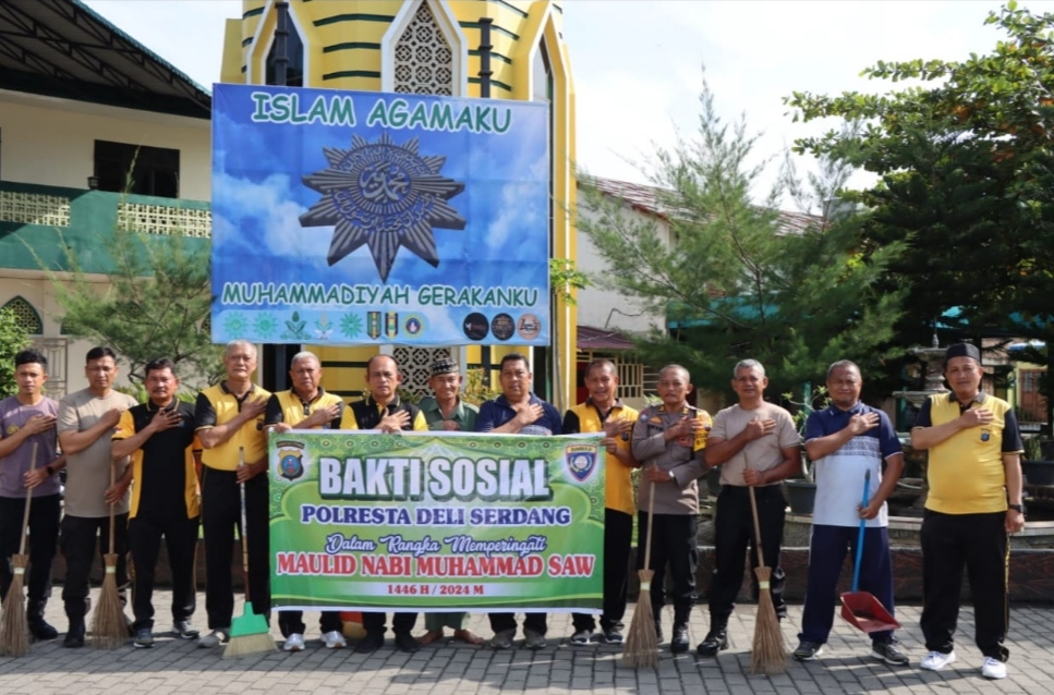 CNN-Deliserdang, Sabtu (15/09/2024), Dalam rangka memperingati Maulid Nabi Muhammad SAW Tahun 1446 H, 2024 M, Polresta Deliserdang laksanakan giat Bhakti Sosial tempat ibadah di Masjid Taqwa Muhammadiyah, Jln Diponegoro Kecamatan Lubuk Pakam Kabupaten Deli Serdang.