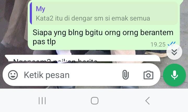 Ibu inisial DD mengatakan kepada Rdf seorang Wartawan Online di Kota Bogor, tertulis di chat whatsAppnya diduga berkata kasar dengan sebutan Lonte.