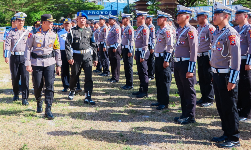 Apel Gelar Pasukan yang dilaksanakan tepat pukul 08.00 Wita, dihadiri Wakapolres, PJU, Dansub Denpom XII/2-3 LB, Sat Pol PP, Dishub dan PT. Jasa Raharja.