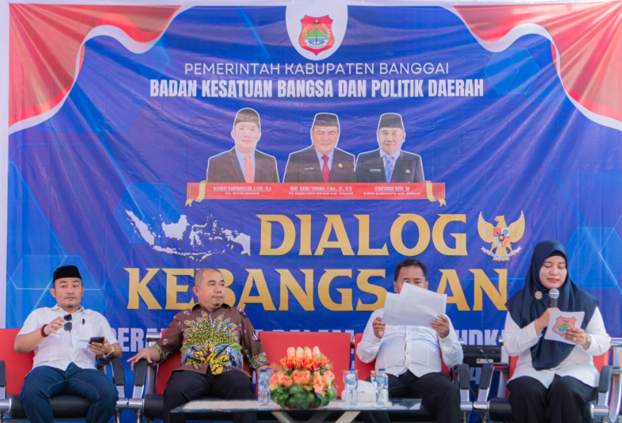 Dialog kebangsaan yang dipandu oleh Kepala Bidang Ideologi dan Wawasan Kebangsaan Badan Kesbangpol Banggai Retno Ridhawati, menghadirkan tiga narasumber, yaitu Kepala Badan Kesbangpol Banggai Syaifuddin Muid, Ketua KPU Banggai Santo Gothia, dan Koordinator Divisi Pencegahan, Partisipasi Masyarakat, dan Hubungan Masyarakat Bawaslu Banggai Arkamulhak Dayanun.