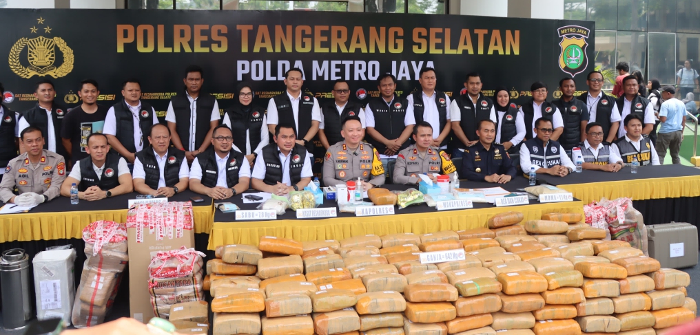“berkat kerja keras dan maksimal rekan rekan dari Satuan Reserse Narkoba Polres Tangerang Selatan, membuahkan hasil yang sangat luar biasa bahwa ada beberapa perkara menonjol yang berhasil di ungkap pada periode agustus sampai dengan September 2024. Ada tiga cluster atau kelompok yaitu satu pemain/pelaku antar pulau dan dua kelompok merupakan jaringan internasional”terang AKBP Victor dalam konferensi pers tersebut.