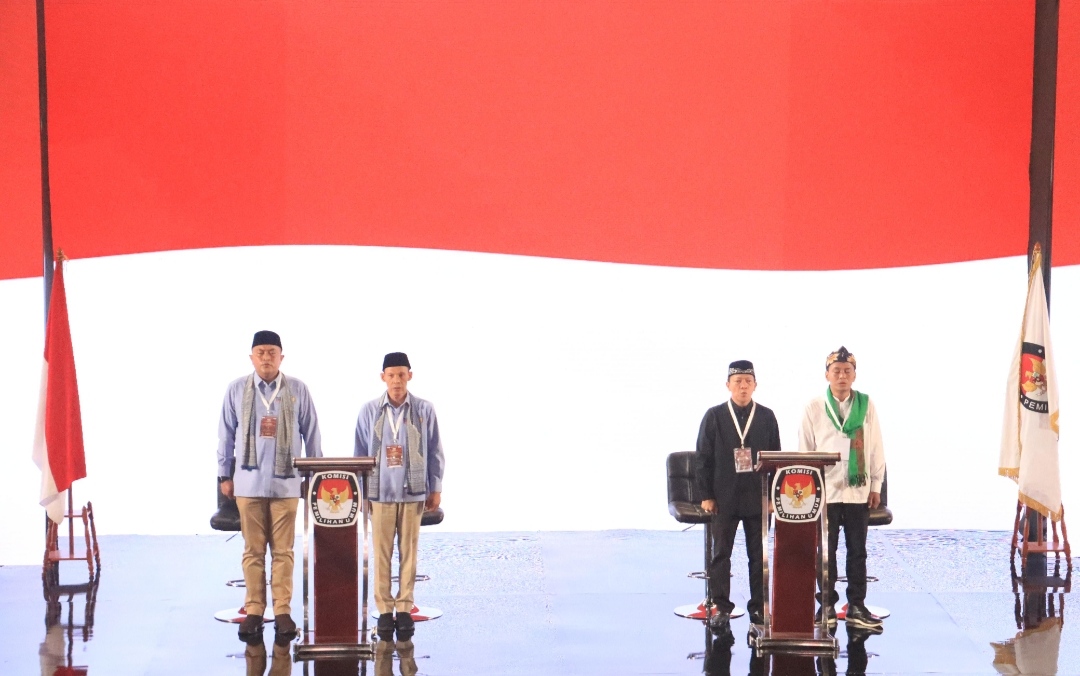 Dalam Debat ini menghadirkan pasangan calon nomor urut 1, Rudi Susmanto dan Ade Ruhandi, yang mengusung visi pembangunan infrastruktur, pengurangan kemiskinan, serta kesejahteraan guru ngaji. Pasangan nomor urut 2, H.R. Bayu Syahjohan dan Musyafaur Rahman, memfokuskan program pada sekolah gratis, pengurangan pengangguran, serta peningkatan fasilitas kesehatan