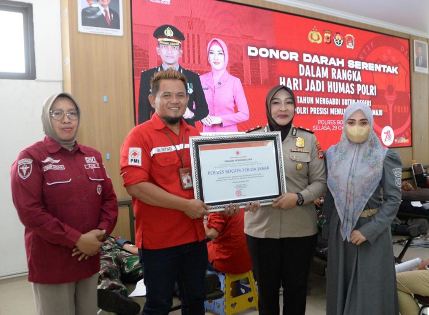 Yang sangat luar biasa pada kegiatan donor darah kali ini, Polres Bogor mendapatkan Piagam Penghargaan Apresiasi dari PMI atas Peran Serta Sebagai Donor Darah Rutin Tahun 2024 yang diterima langsung Iptu Desi Triana Kasi Humas Polres Bogor.