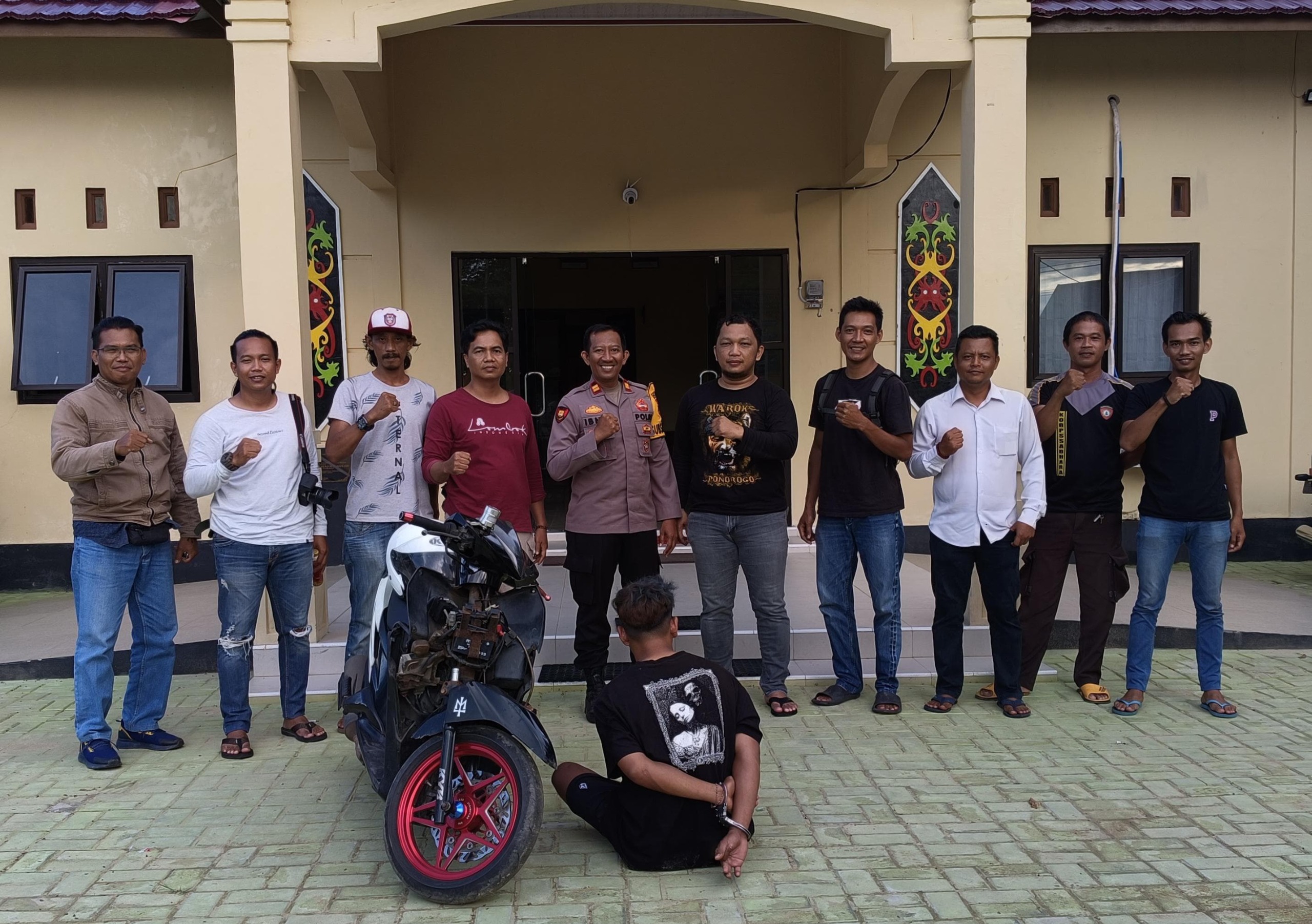 “Kita akan terus melakukan pengembangan terhadap tersangka, untuk sementara ini barang bukti yang kita amankan dari tersangka 1 (satu) buah kotak Handphone beserta Handphone merk OPPO type A78 warna Hijau Lautdan 1 (satu) unit Sepeda Motor merk Vario warna putih hitam dengan Nopol KH 6618 JF”, lanjutnya.