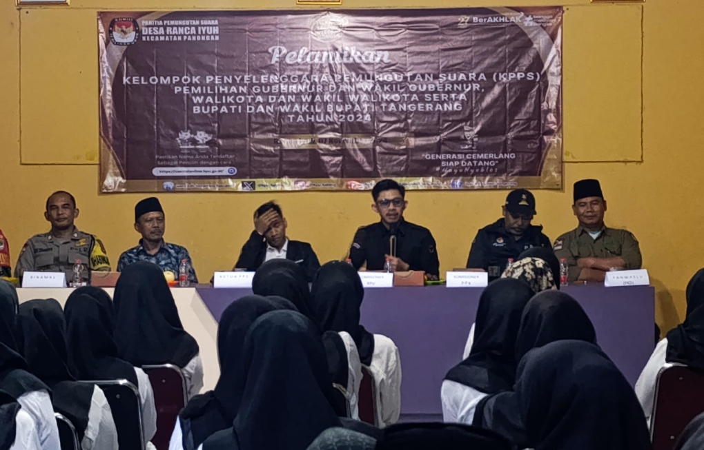 “Hari ini kita melantik KPPS yang ditetapkan oleh panitia pemungutan suara (PPS), atas nama Ketua KPU Kabupaten Tangerang sebanyak 31.388 sebagai bentuk penetapan dan pengesahan status KPPS untuk melaksanakan tugasnya dengan sebaik-baiknya”. Kata Badri Tamam Anggota KPU Kabupaten Tangerang Ketua Divisi SDM saat menghadiri pelantikan KPPS di Desa Rancaiyuh Kecamatan Panongan.