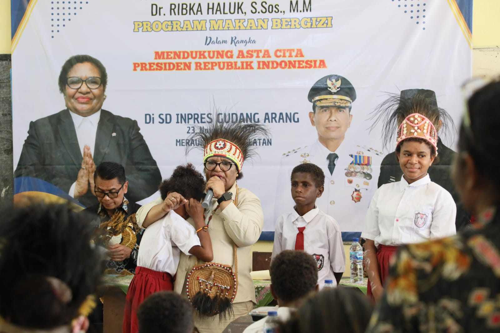 “Bapak Presiden melalui tim-tim ahli di bidang gizi dan sudah dikaji betapa pentingnya program pemberian makanan bergizi bagi anak,” ujar Ribka dalam Sosialisasi Program Makan Bergizi dalam Rangka Mendukung Asta Cita Presiden Republik Indonesia di SD Inpres Gudang Arang, Merauke, Papua Selatan, Sabtu (23/11/2024).