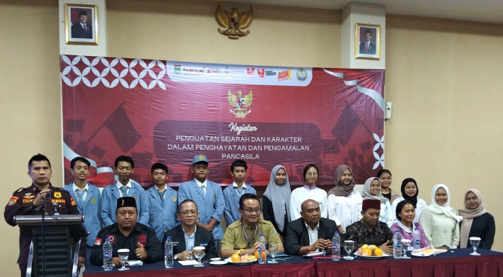 Acara kegiatan penguatan sejarah dan karakter dalam penghayatan dan pengamalan pancasila dibuka oleh Hananto Putro Kabid Idiologi Wawasan Kebangsaan Suku Agama Budaya dan Ketahanan Ekonomi. Didampingi tiga narasumber yaitu Dr. Deni Umbara, S.kom., SH., MH, Rubadi, SH dan Maman Sulaiman, SH., MH.