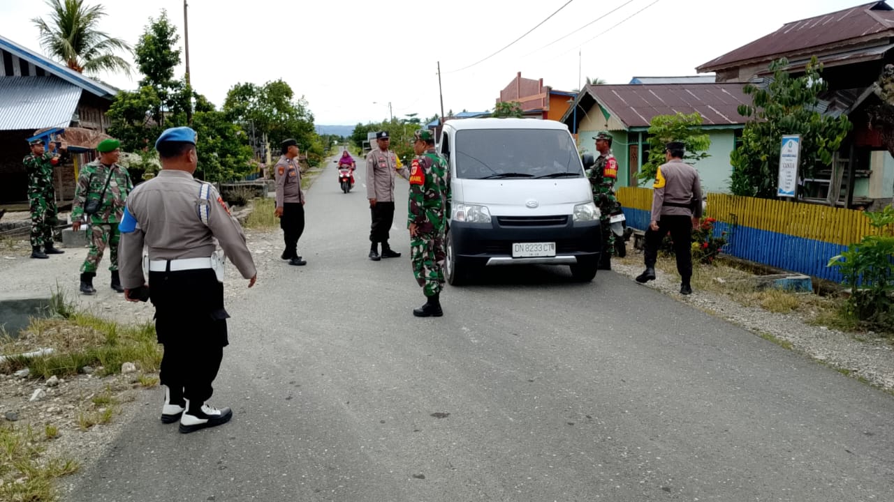 Penyekatan dipimpin Kapolsek Lamala AKP Rudi Cornelis bersama Danramil Peltu Haris Kambotu di Desa Ranga-ranga Kecamatan Masama, Banggai.