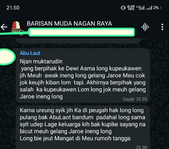 Pasalnya, terkait dugaan pencemaran nama baik yang dilakukan Oknum Ketua LSM Trinusa dengan cara sengaja mengetik kalimat disalah satu group WhatsApp Barisan Muda Nagan Raya pada tanggal 15/12/2024 Minggu Malam.