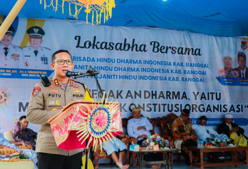 CNN-Luwuk, Kapolres Banggai AKBP Putu Hendra Binangkari menyampaikan himbauan kepada umat Hindu Banggai untuk bersama menjaga situasi kondusif pasca Pilkada 2024.