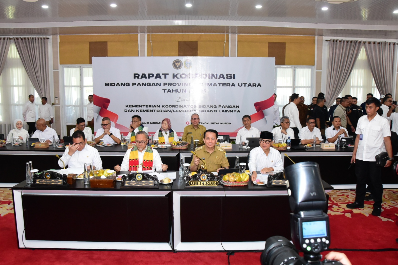 Hadir pula pada rapat tersebut, Menteri Desa dan Pembangunan Daerah Tertinggal, H Yandri Susanto SPt MPd; Mentri Perdagangan, Dr Budi Santoso MSi; Wakil Menteri Dalam Negeri, Dr Bima Arya Sugiarto; Wakil Mentri BUMN, Kartika Wirjoatmodjo SE MBA dan kementerian terkait lainnya. Hadir juga Forum Koordinasi Pimpinan Daerah (Forkopimda) Sumatera Utara, Pj Sekda Sumut, M Armand Effendy Pohan, seluruh kepala daerah se-Sumut dan lainnya.