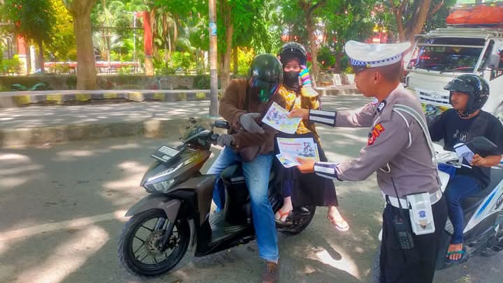 Cakrawalanational News-Luwuk, Satuan Lalu Lintas (Sat Lantas) Polres Banggai menggelar kegiatan pembagian brosur keselamatan berlalu lintas kepada pengendara roda dua dan roda empat di jalan MT. Haryono, Luwuk, Kamis (30/1/2025).