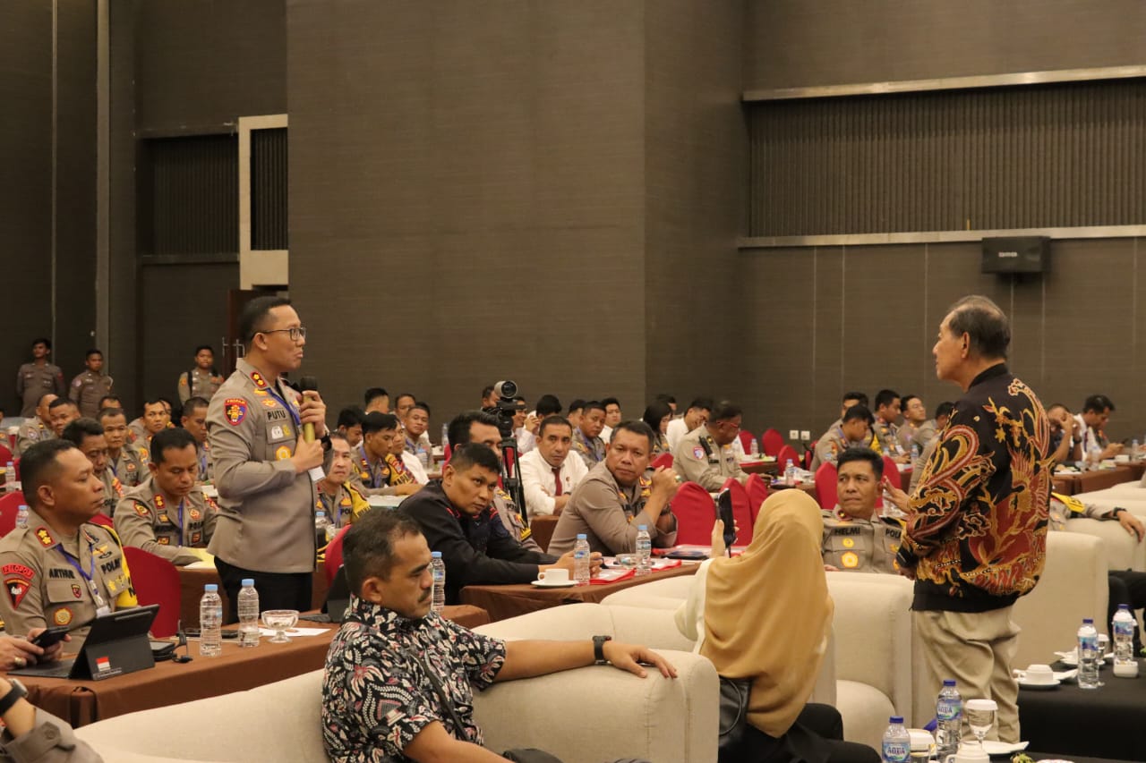 Kegiatan yang bertemakan “Akselerasi Transformasi Polri Melalui Strategi Inovatif Dalam Menghadapi Dinamika Menuju Indonesia Emas 2045 ini bertindak sebagai narasumber Hermawan Kartajaya Selaku Founder dan Chaiman Of Mark Plus Inc.