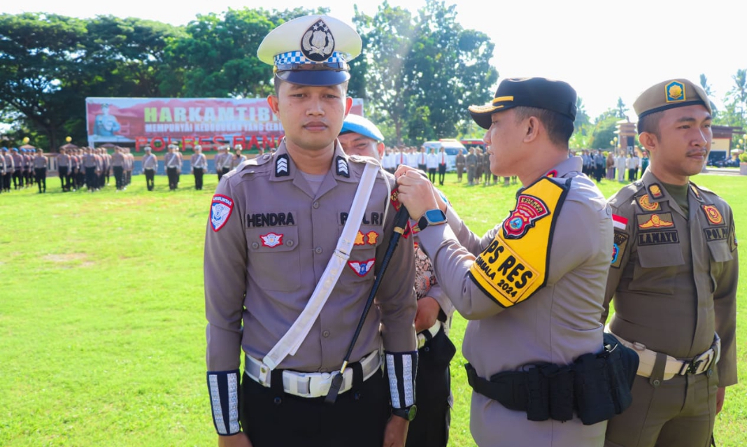 Pelaksanaan apel gelar pasukan dengan penyematan pita tanda operasi kepada perwakilan yang telah ditunjuk.