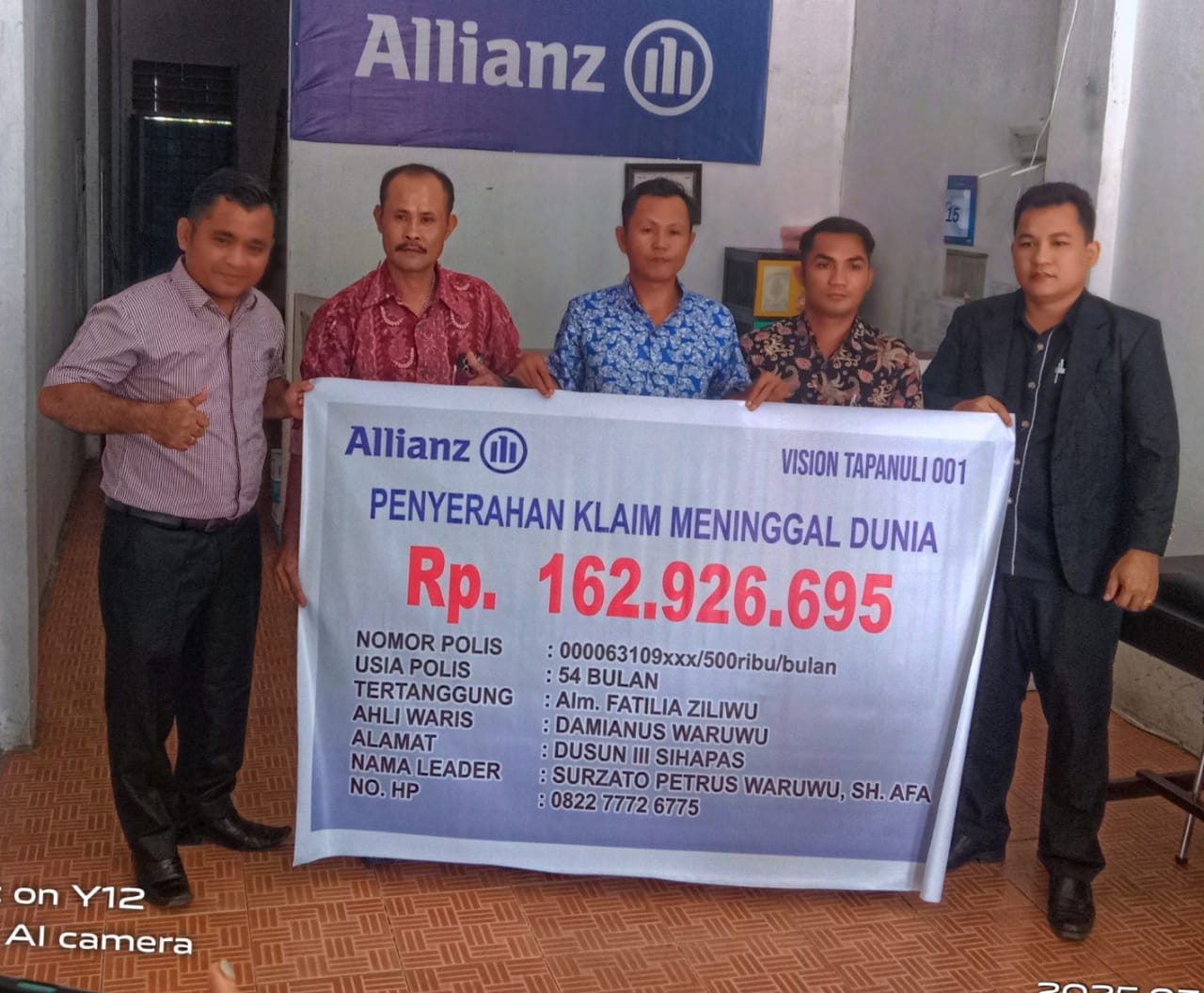 Sebagai mana Standar Operasional Perusahaan (SOP) Peraturan PT. Asuransi Allianz membayaran klaim jiwa tersebut diberikan kepada Ahli Waris Nasabah, yaitu Damianus Waruwu, (42) Thn selaku anak dari Almarhum sebagai bentuk pertanggung jawaban Asuransi Allianz terhadap nasabahnya yang telah disepakati sesuai awal dengan perusahaan.