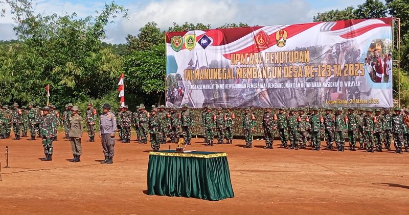 Cakrawalanational News-Kabupaten Bogor, Upacara penutupan Tentara Manunggal Masuk Desa (TMMD) ke -123 Kodim 0621/Kab.Bogor tahun 2025 berlangsung hari ini. Kamis (20/03/2025) di lapangan Kampung Cengal Desa Karacak, Kecamatan Leuwiliang, Kabupaten Bogor Jawa Barat.