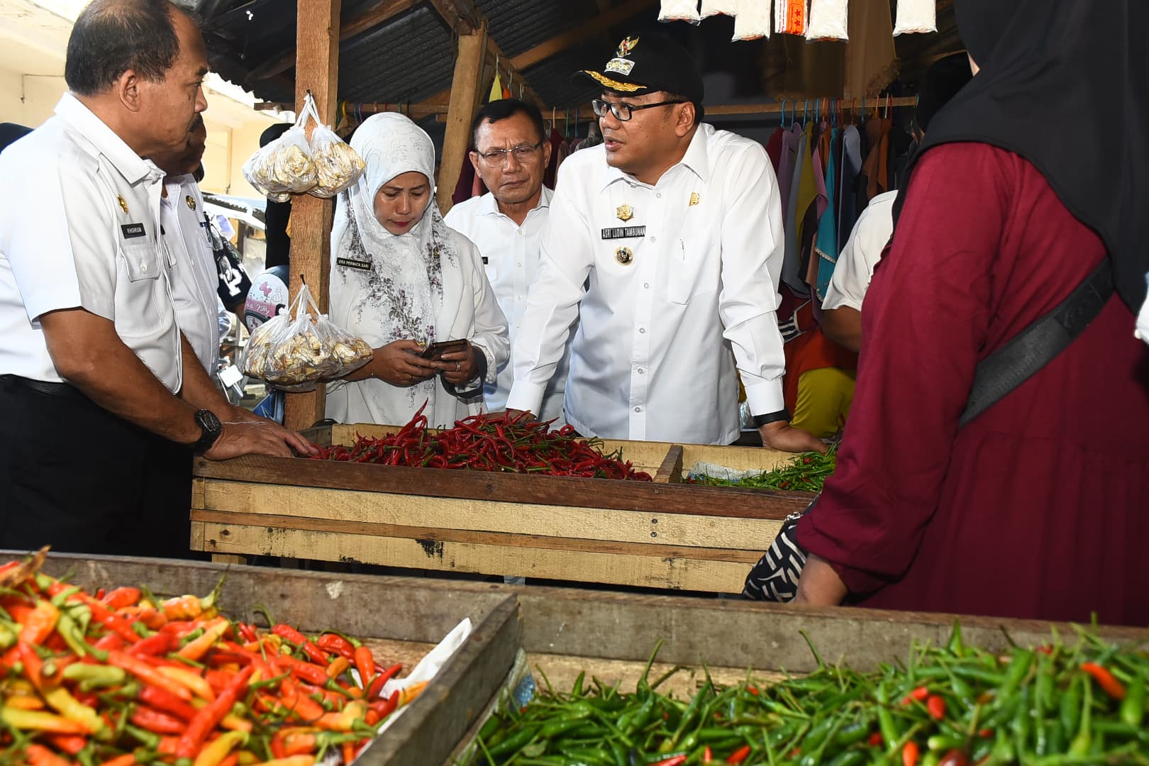 Bupati berbincang dengan para pedagang dan warga, mengakui bahwa beberapa komoditas seperti cabai mengalami kenaikan harga di luar ketetapan pemerintah.
