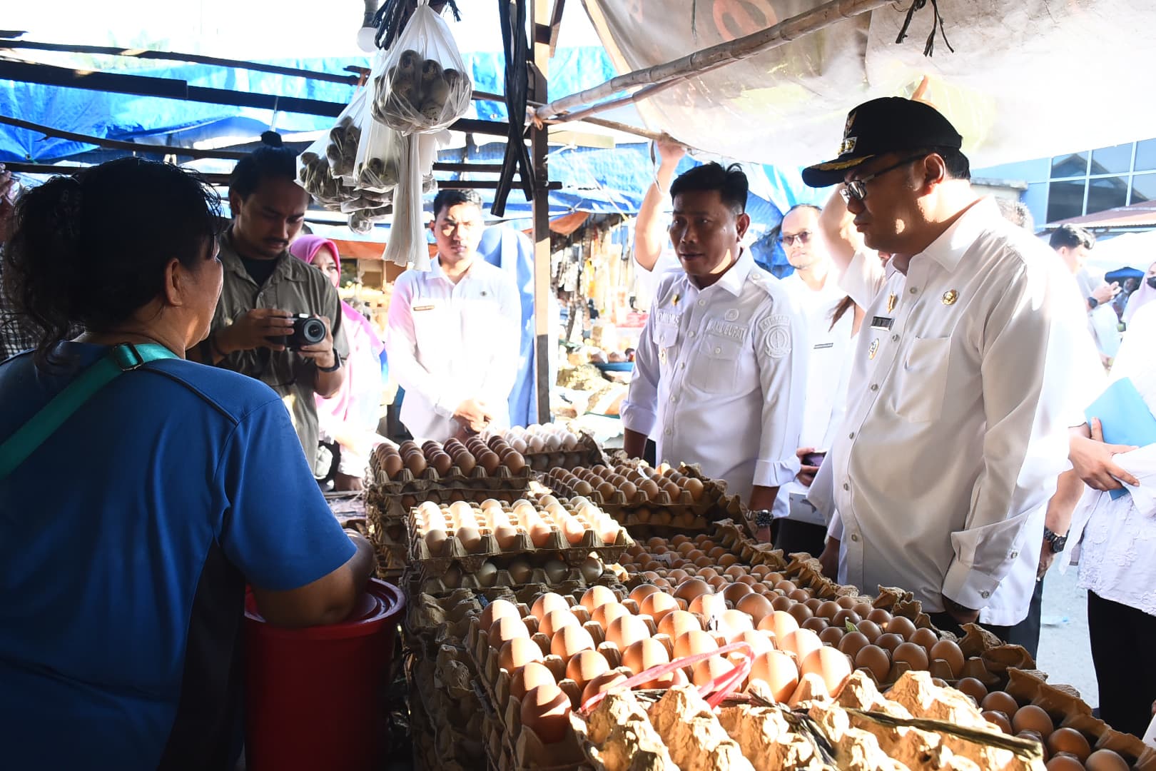 Bupati berbincang dengan para pedagang dan warga, mengakui bahwa beberapa komoditas seperti cabai mengalami kenaikan harga di luar ketetapan pemerintah.