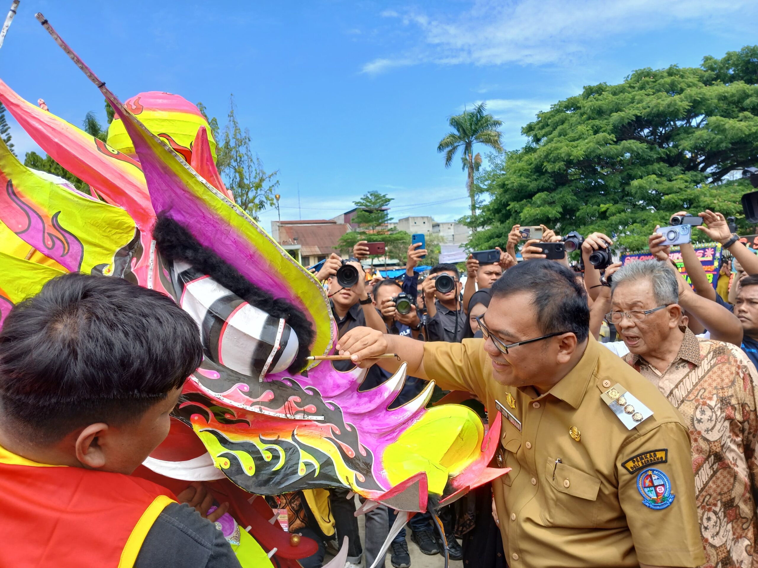 Sebanyak 2.500 peserta dengan mengenakan berbagai pakaian adat 15 etnis di Sumatera Utara tampak begitu anggun dan mempesona, ketika mengikuti pawai yang dilepas Bupati Deli Serdang, dr H Asri Ludin Tambunan bersama Ketua Tim Penggerak Pemberdayaan Kesejahteraan Keluarga (TP PKK) Deli Serdang, Ny Hj Jelita Asri Ludin Tambunan.