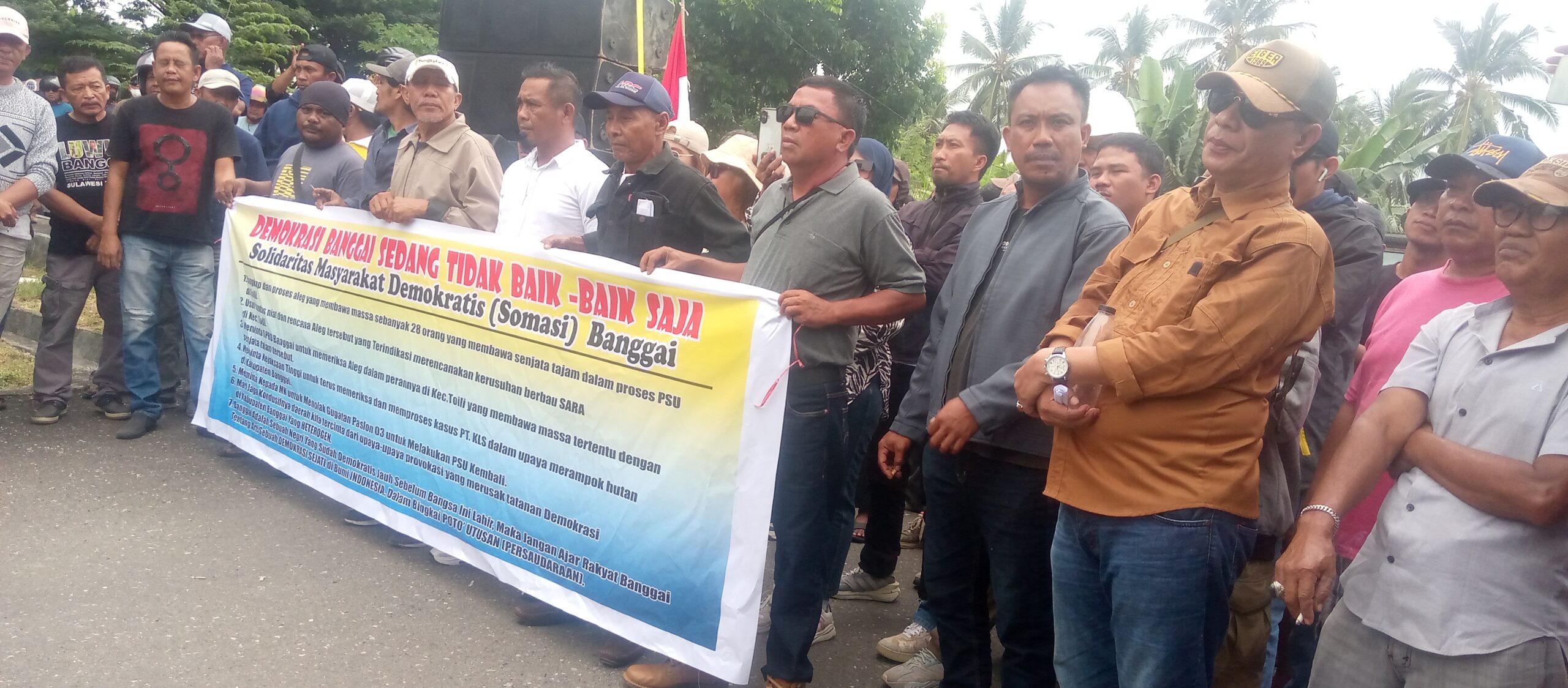 Dalam orasinya, massa menegaskan aksi tersebut bertujuan untuk memastikan tegaknya supremasi hukum dan kepastian hukum di Kabupaten Banggai, serta mengajak seluruh elemen masyarakat menjaga marwah demokrasi agar tetap kondusif dan damai.