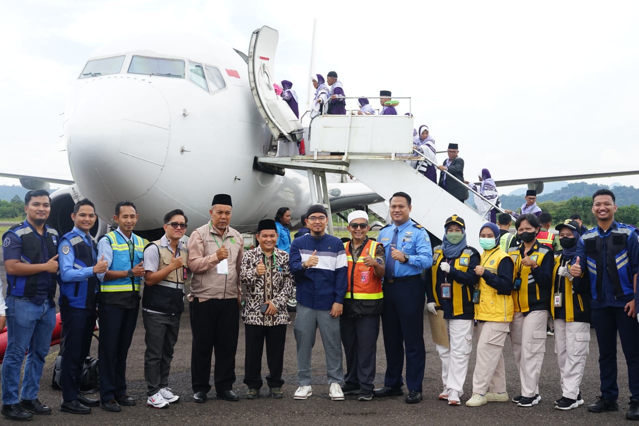 General Manager Bandara H.AS. Hanandjoeddin menyampaikan “apresiasi setinggi-tingginya dan ucapan terimakasih kepada Pemkab Belitung & Belitung Timur, seluruh perwakilan instansi TNI-Polri, Satpol PP, Badan Karantina Kesehatan, RS, Puskesmas, BMKG, Lion Air serta seluruh pihak yang telah mendukung kelancaran keberangkatan Jamaah Haji yang berasal dari Kabupaten Belitung dan Belitung Timur.