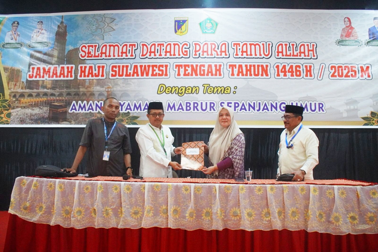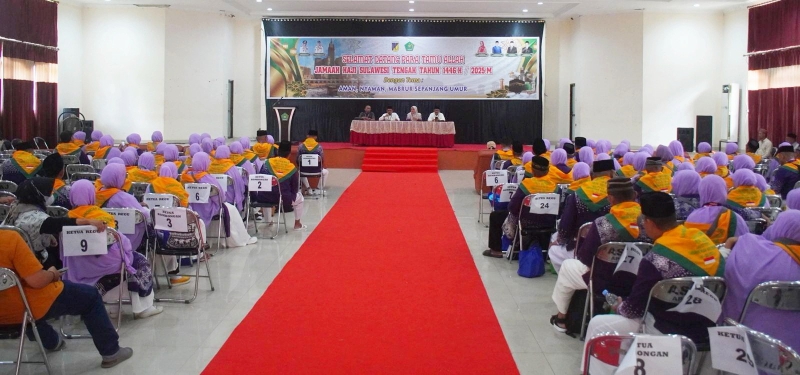 Cakrawalanational News-Palu, Mewakili Pemerintah Kabupaten Banggai, Asisten Pemerintahan dan Kesra Sekretariat Daerah Kabupaten Banggai Hj. Nurdjalal, S.H. menyerahkan secara resmi Jamaah Calon Haji Tahun 2025 Kloter 8 asal Kabupaten Banggai.