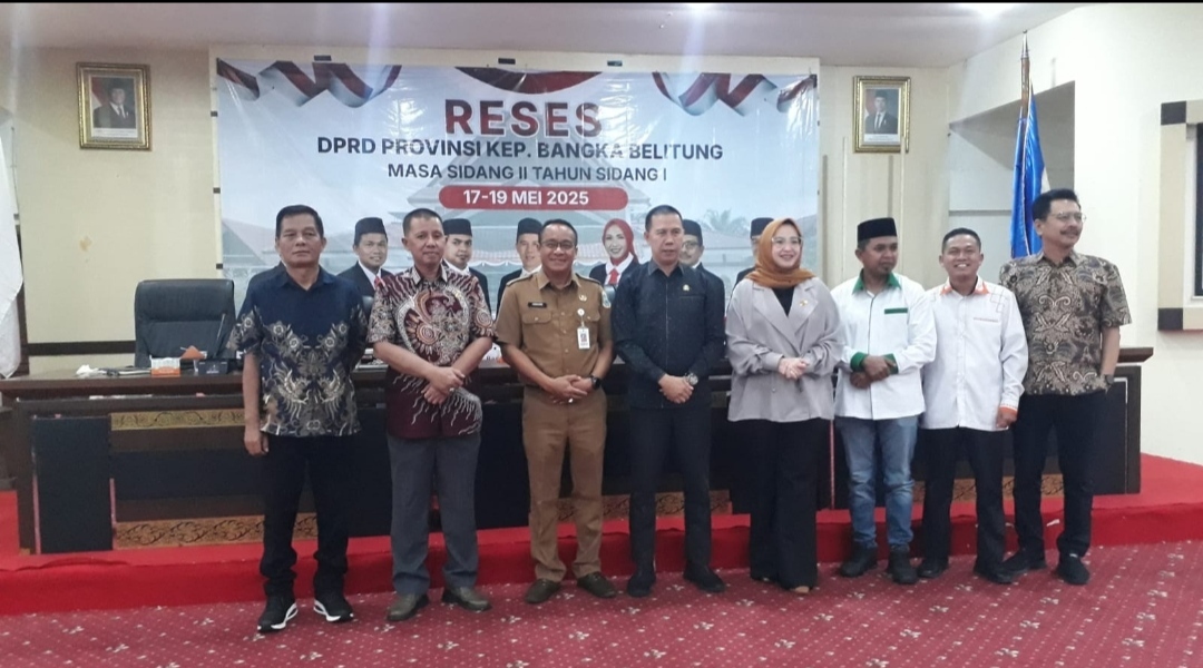 Cakrawalanational.news-Pangkalpinang, Dewan Perwakilan Rakyat Daerah (DPRD) Provinsi Kepulauan Bangka Belitung (Babel) menggelar reses Masa Sidang 2 Tahun Sidang 1 di Kantor Walikota Pangkalpinang, pada Senin (19/5/2025). Reses ini dihadiri oleh Pj Walikota Pangkalpinang yang diwakili oleh Asisten 2 Bidang Ekonomi dan Pembangunan, Juhaini.
