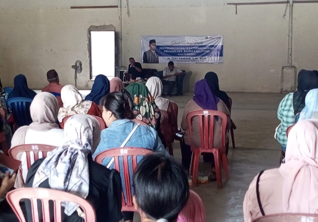 Cakrawalanational.news-Pangkalanbaru, Anggota DPRD Provinsi Kepulauan Bangka Belitung, Zeki Yamani, menggelar kegiatan penyebarluasan Peraturan Daerah (Perda) Nomor 07 Tahun 2014 tentang Pengelolaan Pertambangan Mineral di Gedung Eks Angel Wings, Jalan Raya Koba No. 28, Kelurahan Dul, Kecamatan Pangkalan Baru, Kabupaten Bangka Tengah.