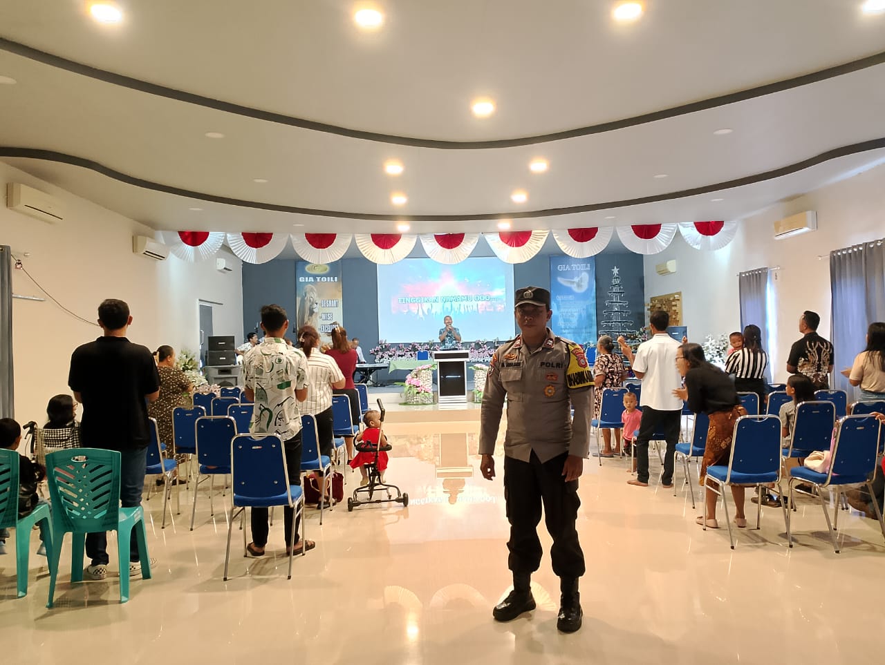 Kapolres Banggai AKBP Putu Hendra Binangkari, SIK, melalui Kasi Humas AKP Al Amin S. Muda menyatakan penjagaan Gereja untuk menciptakan rasa aman dan nyaman terhadap umat Kristen yang melaksanakan kebaktian dan misa.