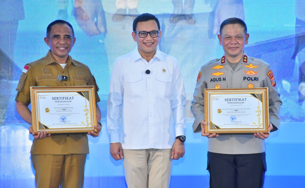 Penghargaan tersebut diserahkan langsung Menteri Perlindungan Pekerja Migran Indonesia (PPMI) Abdul Kadir Karding di Gelora Bumi Kaktus, Palu, Selasa (10/6/2025) dalam pelaksanaan sosialisasi peluang kerja, penanda tanganan MoU, serta Deklarasi Pencegahan Pekerja Migran Indonesia Ilegal dan anti TPPO di Sulawesi Tengah.