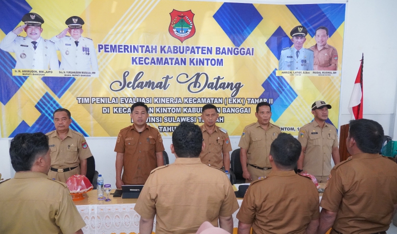 Cakrawalanational.news–Kintom, Kegiatan Evaluasi Kinerja Kecamatan (EKK) Tahap II Tahun 2025 pada hari ini, Senin (16/06/2025), berlangsung di Kantor Camat Kintom. Kintom adalah Kecamatan ke-10 dari 24 Kecamatan yang akan di evaluasi. Masih seperti pada 9 Kecamatan sebelumnya, dilakukan verifikasi lapangan berdasarkan data self assesment yang dilakukan di masing-masing Kecamatan. Tahap II ini lebih menitikberatkan pada verifikasi lapangan, guna menilai kondisi riil di lapangan dan memastikan kesesuaian data dari self assesment dengan fakta.